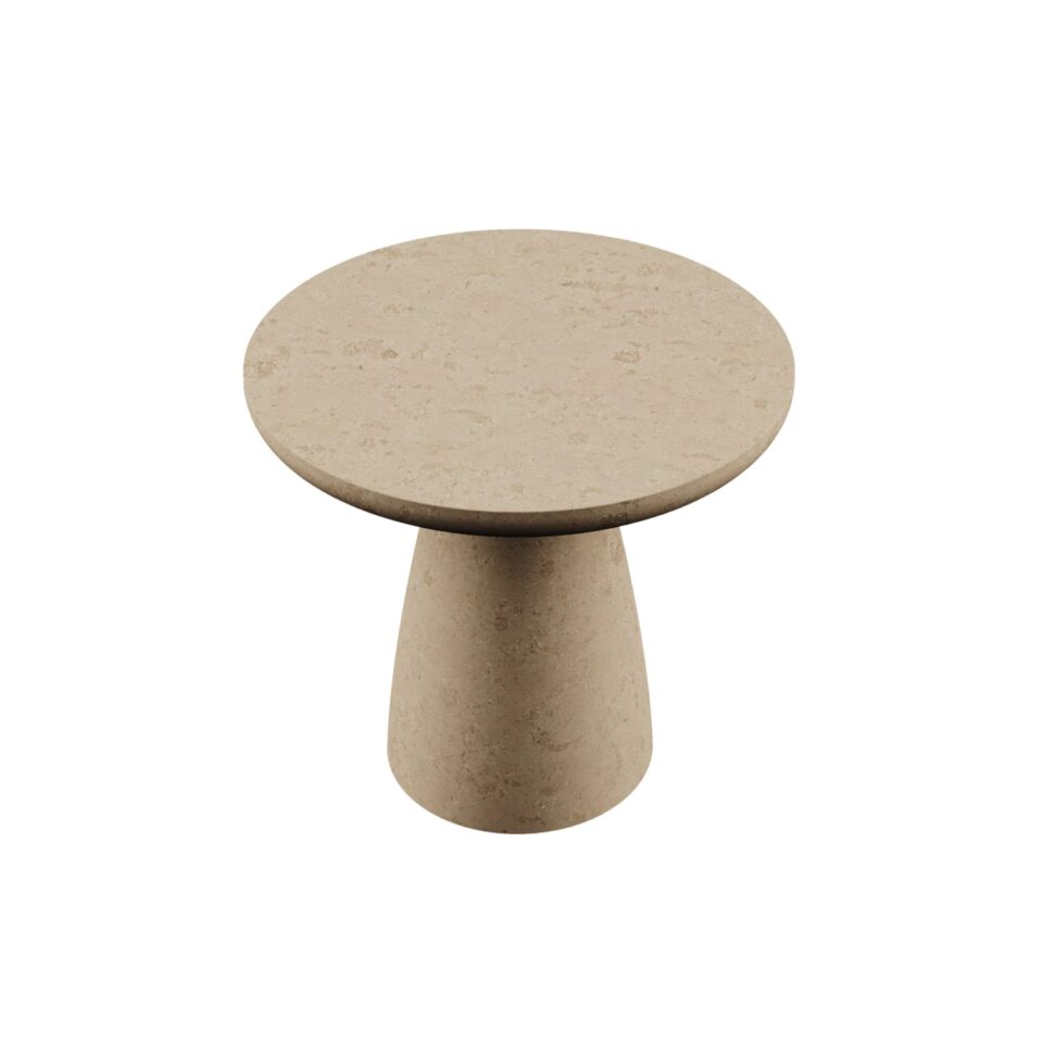 Zimmer Dining Table Travertine is a modern dining table with rectangular top, chunky turned legs, and travertine’s natural color and texture.